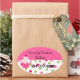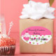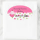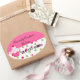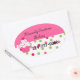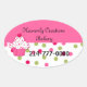 pegatinas ovalados Bonitos, con un colorido fondo polka punto en la mitad inferior, y un sólido rosa, en la mitad superior de los pegatinas. Dibujos cortos de un quequito decoran el lado izquierdo. El texto en negro es totalmente personalizable para su negocio. Ideal para panaderías, panaderías y decoradores de pasteles, para usarlos como sellos en cajas de pasteles y otros empaques. Personalice su negocio.