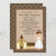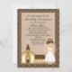 Comienza tu celebración con esta adorable invitación a los chicas especiales Primera Comunión. Tiene un borde de damasco marrón oscuro. en el centro hay un centro bronceado con un borde blanco alrededor. Hay un adorable chica con un vestido blanco de comunión con un velo. Ella tiene el pelo castaño. Junto a ella hay una hermosa iglesia. Invitación perfecta para celebrar su día especial. Consulte los muchos otros elementos de esta línea, como etiquetas, franqueo, notas de agradecimiento y más.