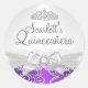 Bonito Tiara y Bow Pegatina de Quinceanera púrpura
