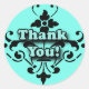 Hermosos pegatinas de color turquesa y negro con un bonito fondo floral. El texto dice Gracias. Estos pegatinas vienen en dos tamaños, y son perfectos para sellar tarjetas de agradecimiento. Si estás enviando notas de agradecimiento por regalos de boda, regalos para bebés o cualquier otra razón, estos pegatinas harán que tus sobres parezcan extra especiales.