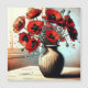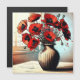 Envases de flores. Camionetas rojas en un jarrón blanco sentado sobre una mesa. personalizados de historietas de bonito.