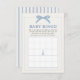 Añade un toque de encanto parisino a tu ducha de bebé con nuestra tarjeta de juegos de bingo con temática Bonjour Bébé. Con suaves tonos azules polvorientos, un ilustracion de la Torre Eiffel de moda y una tipografía elegante, esta carta de juegos aporta diversión y sofisticación a su celebración. Una combinación perfecta para las duchas infantiles de temática francesa, femenina o de temática coqueta, es una bonita forma de entretener a los clientes manteniendo su estética en el punto.