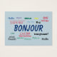 Bonjour Hello Languages World Travel Colorful design, saludando en muchos idiomas diferentes. Diseño frontal: Hola en los siguientes idiomas: portugués brasileño, chino, holandés, inglés, francés, alemán, hausa, igbo, italiano, patois jamaiquino, japonés, coreano, noruego, español, sueco, tailandés y yoruba. Espacio para añadir "hola" en otros idiomas arriba y abajo, para sustituir idiomas y/o moverlos. Diseño posterior: Plantillas para información de contacto comercial, incluyendo nombre de la empresa, nombre, cargo, teléfono, correo electrónico y contacto profesional.