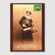 Reimpresión de tarjetas postales antiguas en una tarjeta magnética. Cuenta con una tienda de Navidades. Ella está parada en la nieve y su mano está llena de cajas de regalos . Bonne et Heureuse Annee - este artículo está escrito en la foto que significa en el Año Nuevo Francés Feliz. Cortesía de The Graphics Fairy - editado y aplicado en este artículo por Alma Wad .