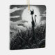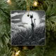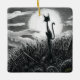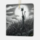Un espeluznante gatito de boo vigila la granja desde un viejo poste cerca a la luz de una brillante luna llena. Desde el boceto del Desafío de Arte con tinta de octubre de 2020 de Amanda Diehl, Paxdomino Designs.