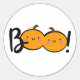 Añade un toque de cortesía a todo lo que puedas imaginar con los pegatinas de Halloween. El Pegatina Boo explica la palabra "boo" con dos calabazas naranjas sonrientes.
