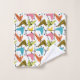 Este conjunto de toallas tiene un diseño moderno de mediados de siglo de boomerang esparcidos por los segmentos que los cruzan.