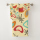 Este conjunto de toallas tiene un diseño moderno de boomerang de mediados de siglo con colores y estrellas de los años 70.