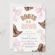 Celebra la anticipación del género de tu pequeña con nuestra atractiva invitación a revelar el género de Boots o Bows. Perfecto para un género occidental o rodeo revelar fiesta, esta invitación presenta hermosos arcos rosados y botas de vaquero que simbolizan el clásico tema de "Él o Ella".