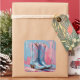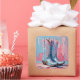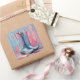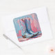Hermoso diseño de botas rosadas y cowgirl sobre fondo azul perfecto para pegatinas.