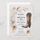 Celebra a la futura ama con esta rústica invitación a los Boots y a la ducha de bebé Brunch. Con elegantes botas de vaquero acuáticas, pasto de pampas y detalles florales neutros, esta invitación marca el tono para una celebración encantadora y elegante. Completamente personalizable con los detalles de los eventos, es perfecto para duchas infantiles de temática rural o de inspiración occidental. Opciones para descargar o imprimir disponibles para satisfacer sus necesidades.