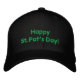 "¡Feliz Día de San Patricio!", bordado en "Kelly verde claro" en un gorra negro.