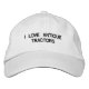 Aquí hay un gorra ajustable con las palabras me ENCANTAN los TRACTORES ANTIGUOS.