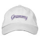 Gorro de béisbol con bordado personalizado Grammy / sombrero de béisbol, diseñado por 369MyName, mostrado en blanco con fuente púrpura. Personalizable completo.