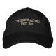 El texto bordado de color claro dice "CHIROPRACTICO - EST. 1895". Personalizar para cambiar los colores del gorra y del subproceso.