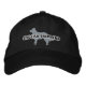Este fantástico gorra del Pastor Inglés está bordado con la silueta de la raza del perro, la silueta del perro pastor es un gris plateado, y el contorno del texto es blanco. ¡Parece fantástico a nuestros gorras negros!