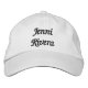 La gran cantante de Banda Jenni Rivera. Su nombre se acentúa con un guarnecido negro sobre un gorra blanco.
