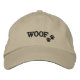 ¡Muéstrale a tu amante de los perros! Esta gorra china de algodón 100% de calidad tiene la palabra WOOF bordada en la parte delantera en hilo negro, junto con dos pequeñas huellas de pata, también bordadas en negro.
