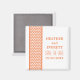 Moda y moderno borde de Chevron Save the Date Magnet con un sencillo borde de patrón de chevron en blanco y naranja. Este diseño elegante marcará el tono de una boda elegante. Fácil de personalizar, simplemente agregue los detalles de su boda en los campos de texto proporcionados. Haga clic en "Personalizar" para encontrar más opciones de personalización.