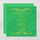 La pintura de un borde amarillo Fleur de lis está pintada sobre un fondo diagonal verde de menta de flor mezclado, con un marcador de posición para el mensaje, se imprime en invitaciones cuadradas. Genial para bodas. Personalice fácilmente el texto del cuadro de plantilla.