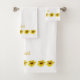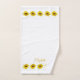 Esta toalla muestra un borde de girasoles sobre un fondo blanco. Se configura una plantilla para un nombre que puede cambiarse al nombre que desee. Trae un vistazo de primavera a tu baño. La foto puede ser reemplazada por la suya si lo desea. Póngase en contacto conmigo en jen@jenaleefamilystorykeeper.com si necesita ayuda.