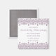 De esta forma, el imán de fecha presenta una lavanda , un borde caprichoso en un patrón abstracto.Los detalles del boda están escritos en un tipo moderno.