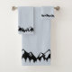 Borde del paisaje forestal con árboles y montañas en el fondo, en un fondo gris azul ahumado. Para la casa del lago, cabaña de montaña o cabaña.