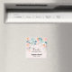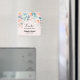 Un imán a favor con un elegante borde floral. Flores y hojas en rosa y verde.