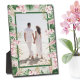 Placa de mesa con caballete incorporado que muestra tu foto favorita acentuada con hermosas flores tropicales y vegetación en acuarela sobre FONDO DE CUALQUIER COLOR. CAMBIA la fecha al año actual o puedes eliminarla o agregar más información. Ideal como regalo o para mostrar tu foto favorita en tu propio hogar. Los colores de tu imagen se plasman directamente sobre el panel de tablero duro para obtener una imagen nítida y brillante con una superficie fácil de limpiar. *Diseño HORIZONTAL realizado para ti en nuestra tienda.