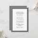 Invitación de matrimonio clásico gris y negro sobre blanco con padres de la novia nombrados en la presentación como anfitriona. Bloque elegante, guión y texto plano dentro de un borde gris y negro. Gris negro. Para ajustar el diseño, haga clic en Personalizar, Editar texto y, a continuación, haga clic y arrastre las secciones de texto a las ubicaciones deseadas. Utilice Ctrl para seleccionar y mover varias secciones a la vez.