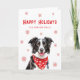 Tarjeta de Navidad de Border Collie con Pañuelo Rojo con Corazón. Envía cálidos deseos con esta adorable tarjeta de Navidad de Border Collie. Con un cachorro festivo con un pañuelo rojo y un diseño estacional dulce, es perfecto para amantes de los perros y familias de Border Collie. Personaliza con tu nombre o mensaje para un toque navideño encantador.