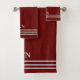 Este juego de toalla de baño a rayas bordó/rojo oscuro con gris claro es perfecto para casi cualquier decoración. Monograma con sus iniciales. El juego incluye toalla de baño, paño de mano y toalla de mano. Ideal como regalo o para renovar las toallas de su baño.