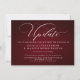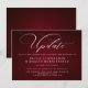 Hermoso Burgundy con letras blancas y una gran caligrafía - "Actualizar" en la parte superior - Si has enviado las invitaciones y has tenido que pausar inesperadamente la fecha de tu gran evento, envíalas a tus invitados. Usamos una fuente de escritura moderna para el título 'nuevos planes', puedes cambiar fácilmente esta redacción simplemente escribiendo entre las pequeñas casillas para mantener los florituras iniciales y finales. Utiliza el resto de los campos de la plantilla para agregar tus datos personales y hacer que este diseño moderno sea tuyo.