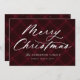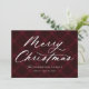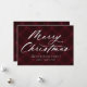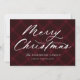 Elegante tarjeta navideña con "Feliz Navidad" exhibida en un guión de caligrafía blanca sobre un fondo de manto burdeos pintado. Personalice la parte delantera de la rústica tarjeta de vacaciones sin foto añadiendo su nombre y el año. La parte posterior de la tarjeta presenta un fondo de manchas a juego con sutiles puntos blancos de nieve.