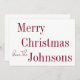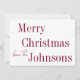Este es un diseño navideño moderno. Es una tendencia, mínima borgoña y blanca y tiene el mensaje, "¡Feliz Navidad! de los Johnsons". Ideal para tu tarjeta de Navidades para esta temporada festiva. Para personalizar, simplemente agregue su nombre en el cuadro de texto personalizar. Aquí también puede cambiar el resto del texto si lo desea. Compruebe la herramienta de edición de diseño para cambiar el color o el tipo de letra. Feliz Navidad! Para obtener ayuda con la personalización, los productos coincidentes o un correo electrónico de diseño personalizado: ursuladawnmoon@gmail.com