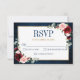 Borgoña Floral Gold Navy Blue Rustic Wedding RSVP