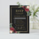 Flor color de agua rojo borgoña color de la marina rosa rosa de la plantilla de la tarjeta RSVP de boda floral con marco dorado y letras doradas con follaje botánico verde y hojas de eucalipto en fondo azul marino. Este hermoso diseño fácil de personalizar puede coincidir fácilmente con sus colores, estilos y temas bodas y es una elección perfecta para bodas de otoño o invierno. Puede encontrar más diseños coincidentes de mi tienda o contactarse conmigo si necesita ayuda en la personalización del diseño.