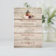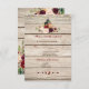 Rústico diseño de una carta de tiras de arañas borgoñonas florales con bonitas flores acuáticas, flechas con corazones y ramo de flores como divisor, luces de cuerda, en un antiguo granero; en la parte trasera un antiguo granero con elegantes ramos florales de acuarela. Utilice la herramienta Personalizar para agregar su información. Puede cambiar fuentes, colores. Para ver los artículos a juego, por favor, visita mi colección de Bodas de arándanos florales de Borgoña Marsala.