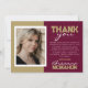 Tarjeta de agradecimiento de la graduación moderna de oro de Borgoña y bronce - 2 Foto - Repetir clase año atrás