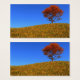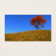 Un apacible paisaje en 3D en otoño, creado en Vue. Encima de una colina cubierta de césped alto y dorado, contra un cielo azul claro, un solitario arce naranja se para con un banco de madera debajo para detenerse y descansar.