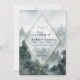 Esta invitación a la boda tiene un bosque de color agua con un borde falso dorado en forma de diamante. Los colores utilizados incluyen verde forestal, sabio y verde gris. En la parte superior está el texto estilizado en negro que dice "el boda de". Los detalles de la invitación están en negro y son de personalizable. Todo se muestra en un fondo de color de agua verde. La parte trasera de la invitación tiene un fondo verde sobre el bosque que se coordina con los colores del frente. Una buena manera de invitar a los huéspedes a su boda.
