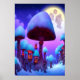 Bosque de hongos, noche, luna, nieve | Arte IA
