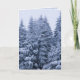 Esta tarjeta de Navidades cuenta con un bosque de invierno nevado. Árboles de abetos de nieve en tonos azules sobre un fondo delicado. Fotografía original. Gran, romántico y elegante diseño para sus saludos navideños! Texto personalizado e imagen en la parte posterior.