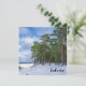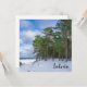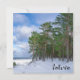 Vista panorámica del bosque de pinos cerca de la costa de la nieve durante los soleados días de invierno con cielo azul con nubes