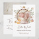 Los amigos animales de la selva de la selva cutánea y únicos de la acuarela agregan el factor Wow! a su anuncio de nacimiento, tarjeta de agradecimiento con su guión de caligrafía y foto únicas contra un grupo de flores silvestres. Una perfecta invitación de estadísticas de natalidad y tarjeta de agradecimiento para un niño o chica. Personalizar fácilmente sus detalles para hacerlo suyo.