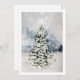 Moderna Tarjeta navideña de árbol de navidad nevada en el bosque. Opción para quitar la imagen caligráfica de la parte posterior.