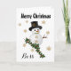Envíe sus saludos del navidad y del Año Nuevo a su Boss en esta tarjeta digital dulce del arte de un muñeco de nieve que sostiene acebo y rodeado por los copos de nieve de oro. Usted puede utilizar el saludo interno o añadir sus propios sentimientos del día de fiesta. ©SmudgeArt - Madeline M Allen