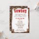 Grandes invitaciones para fiestas de cumpleaños temáticas de Cowboy para tu vaquero favorito. El diseño tiene la palabra Cowboy, un gorra vaquero y botas de vaquero. El fondo es un patrón de bandana marrón.Usa nuestra plantilla fácil para personalizar con tu información.