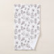 toallas de baño de flores en blanco y negro bonito. Refresca la decoración del cuarto de baño con un ambiente veraniego de primavera. Flores blancas y negras sobre un fondo blanco con una inicial blanca sobre el negro.