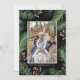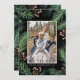 A tu familia y amigos les encantará esta hermosa tarjeta de navidades "Be Merry". Presenta elementos botánicos modernos de color verde y rojo pálido sobre un fondo negro. Personalizar con su propia foto y apellido.